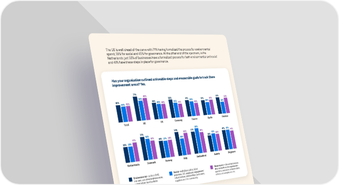 The US is well ahead of the curve with 71% having formalized the process for environmental spend, 58% for social and 65% for governance. At the other end of the spectrum, in the Netherlands just 33% of businesses have a formalized process for both environmental and social and 41% have these steps in place for governance. Has your organization outlined actionable steps and measurable goals to track these improvement areas? Yes. 71% 65% 58% 56% 51% 53% 49% 44% 45% 49% 45% 44% 45% 46% 47% 47% 50% 41% 40% 40% 38% Total US UK Germany France Spain Sweden 54% 58% 51% 50% 51% 48% 47% 47% 46% 42% 44% 41% 41% 38% 37% 38% 38% 38% 40% 33% 33% Netherlands Denmark Norway Italy Switzerland Austria Singapore Environmental - carbon, GHG, Social - workplace safety, labor Governance - rules and processes net zero, use of natural resources, practices, DEI, employee engagement/ that decide how the organization organization travel policies volunteerism, relationships customers, operates, executive compensation, suppliers and the community ethics and compliance, etc. At least two thirds (rising to more than 4 in 5) in each market believe that technology is important when ‘compiling and collaborating on ESG data’. How important or unimportant is technology to addressing each of the following issues? Compiling and collaborating on ESG data (Very important and Somewhat important) 76% 85% 78% 77% 78% 76% 81% 79% 84% 74% 73% 68% 74% 67% Total US UK Germany France Spain Sweden Nether- Denmark Norway Italy Switzer- Austria Singapore lands land WWORKIVORKIVA ESG REPA ESG REPORORT FINDINGT FINDING 17